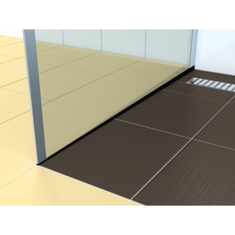 Fekete cseppprofil (balra) a padlószintű tálca nélküli zuhanykabinokhoz.