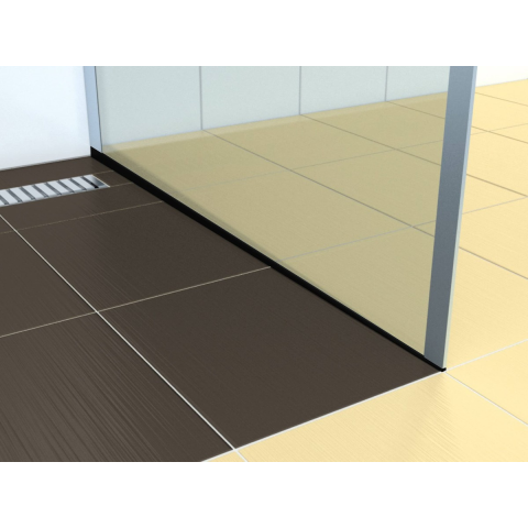 Fekete cseppprofil (jobbra) a padlószintű tálca nélküli zuhanykabinokhoz.