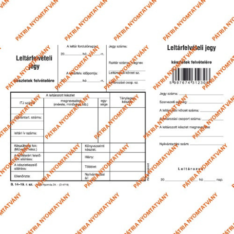 1 kép Leltárfelvelvételi jegy készletek felvételére 100 lapos tömb A/5 fekvő