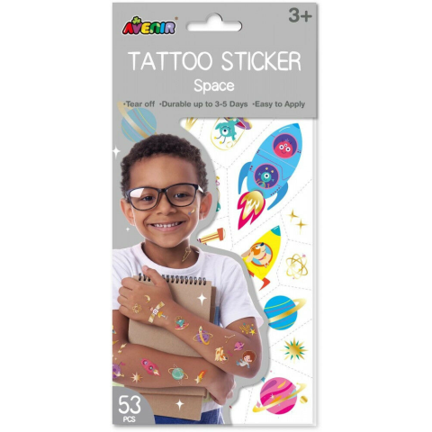 Lemosható tetoválás az Avenir Kids márkától. A csomagban 53 db könnyedén felrakható és lemosható tetováló matrica található.