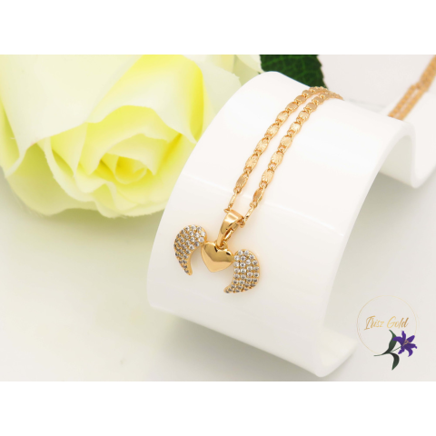 Antiallergén gyönyörű medál szívecske és angyal szárny metszett nyaklánconSzin: 18K Méret: 50cm/3mm Medál:21x18mm