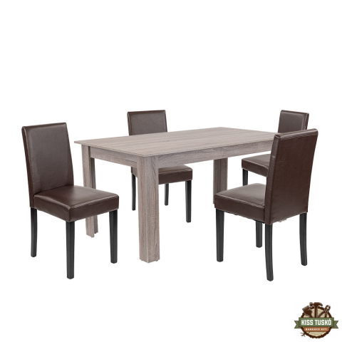 Leon 4+1 étkező garnitúra yorki tölgy-barna Leon 4+1 étkező garnitúra yorki tölgy-barna Leziter Leon 4+1 étkezőgarnitúra – stílus és kényelem mindennapokra Te is unod már a billegő asztalokat és a kényelmetlen, nyikorgó székeket, amik elrontják a közös