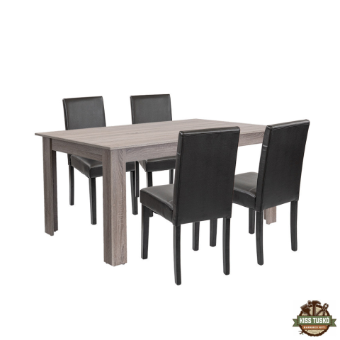Leon 4+1 étkező garnitúra yorki tölgy-fekete Leon 4+1 étkező garnitúra yorki tölgy-fekete Leziter Leon 4+1 étkezőgarnitúra – stílus és kényelem mindennapokra Te is unod már a billegő asztalokat és a kényelmetlen, nyikorgó székeket, amik elrontják a köz