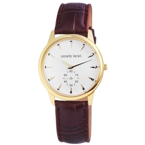Teljes Leonardo Verrelli férfi karóra barna műbőr szíjjal termékleírás