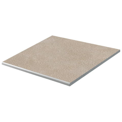 Vágot élű. Fagyállló. Lépcső sötétbézs színben beton kivitelben mérete 59,8x59,8 cm vastagsága 20 mm matt felülettel. Beltérbe és kültérbe is alkalmas. Nagy eltérésekkel a színárnyalatban, a felületi textúrában és a rajzban. Rendkívül kopásálló. Alkalmas szállodai csarnokokba, üzletekbe és garázsokba.