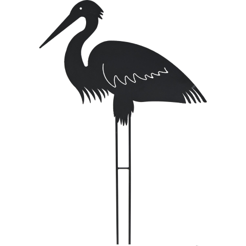 Ágyások és növénytartók modern dísze a földbe szúrható tüskével ellátott gólya. Egyszerű kialakítású és sötétzöld színben készült. A leszúrható fém dísz beltéren és kültéren egyaránt használható. Anyaga erős fém. A kerti dekoráció mérete 90 cm x 1 cm x 60 cm (Ma x Sz x Mé).