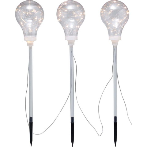 Villanykörte alakú, leszúrható kerti lámpa 60 LED-del, 3 darabos készletben, 65 cm magas, melegfehér LED-ekkel, átlátszó kábellel, kültéri használatra