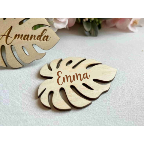 A monstera levél formájú ültetőkártya tökéletes választás, ha szeretnéd különlegessé és természetközelivé tenni esküvőd asztaldekorációját. Ez a lézervágott natúr fa kiegészítő nemcsak praktikus – hiszen segít a vendégeknek megtalálni a helyüket –, de egy