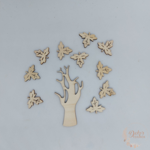 Méret: 10 cm fa + 2-3 cm-es 10 db levél Szín: natúr Anyag: fa Tömeg: 7 gramm