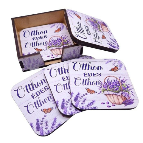 6 darab tömör parafa levendulamintás poháralátét / 8.5 cm x 8.5 cm x 4.5 mm