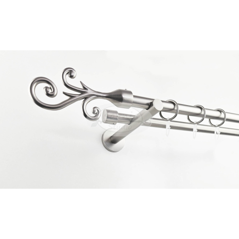 A LEXINGTON 120 cm-es nikkel-matt színű 2 rudas fém karnis szett tartalma: 2 db 120 cm-es nikkel-matt színű 16 mm átmérőjű fém karnisrúd 2 db Lexington nikkel-matt színű fém karnis végzáró 2 db Kansas típusú, kis kupak formájú fém karnis végzáró 2 db fal