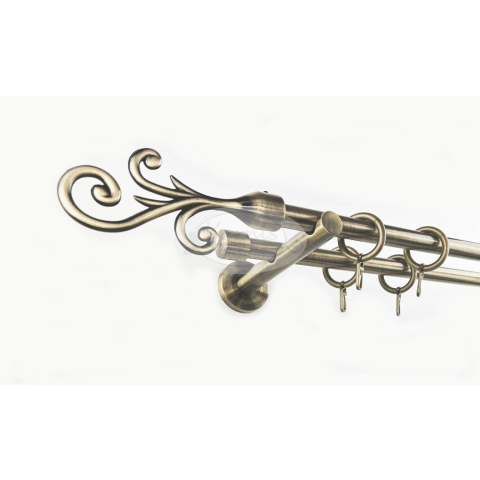 1 kép Lexington óarany színű 2 rudas fém karnis szett modern tartókkal - 300 cm