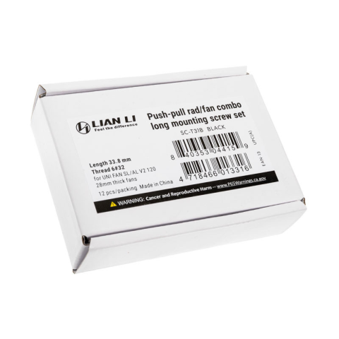 Az itt kínált Lian Li SC-T31B ventilátorcsavarok segítségével könnyedén rögzítheti 28 mm magas ventilátorait a radiátorhoz.