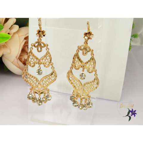 Antiallergén bőrbarát hosszú csüngős csipkemintázatú fülbevaló pici kövekkel Szin: 18K Méret: 60x25 mm