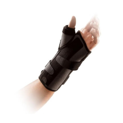 Alakítható alumíniummerevítők teszik lehetővé a hüvelykujj pihentetését, míg a csukló mozgását szabadon fenntartják. Tépőzáras rögzítő pánt. Röntgensugár áteresztő a merevítők. Megfelelő kényelmet biztosító szellőző, habszivaccsal bélelt anyagból. Langyos