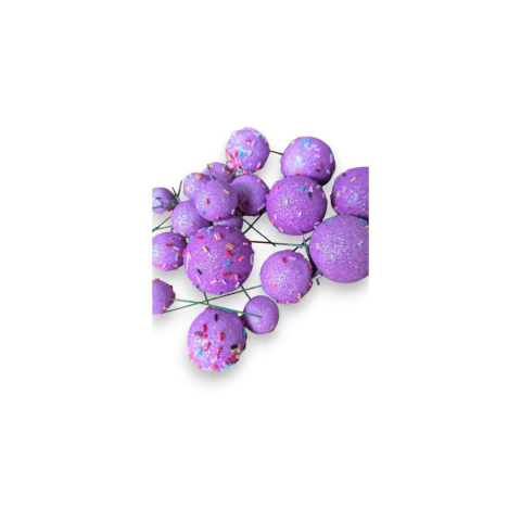 A lila csillámos gömbdekoráció tortára, beszúró a tortadíszítés új dimenzióját hozza el. A lila szín a luxus és a kifinomultság érzését kelti, míg a csillogó gömbök a tortádnak egy csodálatos ragyogást adnak. A csomag 20 darab, 2 és 4 cm közötti méretű beszúrható gömböt tartalmaz, amelyeket könnyedén elhelyezhetsz a tortán.
