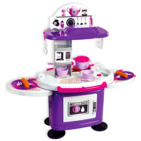 Nagyszerű ajándék a kis szakácsok számára, amely azonnal vonzza őket. Szép konyha fehér-lila kivitelben. Konyhai kiegészítőkkel a gyerekek elkezdhetik a legjobb és legízletesebb finomságok készítését.Ez egy kiváló minőségű gyermek műanyag konyha, amely sz