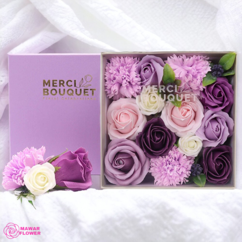 1 kép Lila Rózsa és Szegfű Szappanvirág doboz
