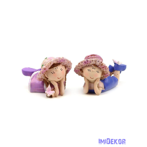 1 kép Lila virágkalapos fekvő figura 8x5,5cm