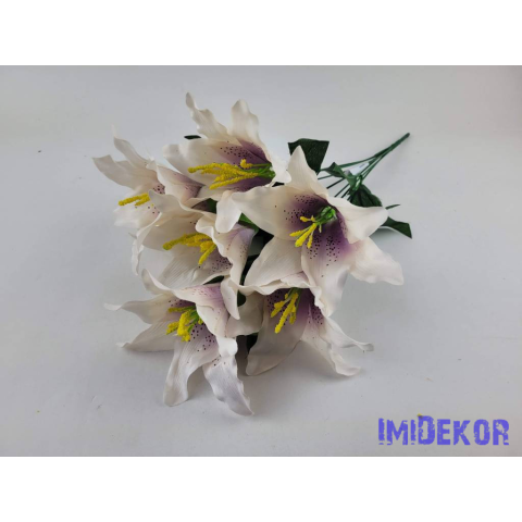 1 kép Liliom 7 fejes selyemvirág csokor 49cm - Ekrü-Mályva