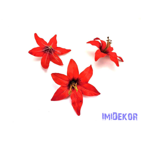 Liliom selyemvirág fej 13cm - Piros dekoráció 1 kép