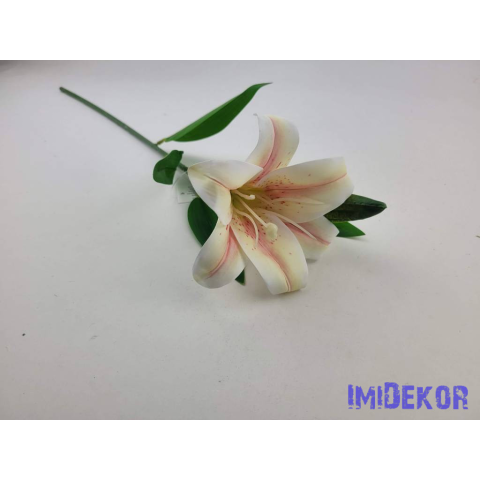 Liliom szálas gumis művirág 47cm - Krém-Rózsaszín Cirmos