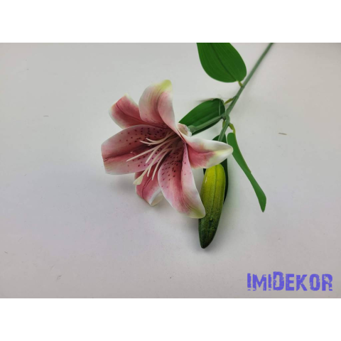 Liliom szálas gumis művirág 47cm - Sötét Rózsaszín