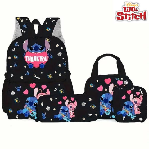 Lilo & Stitch 4 részes iskolatáska szett – FEKETE MB3567988-FVidám Stitch dizájn, praktikus mindennapi használatra vagy ajándéknak!Ez a 4 az 1-ben Stitch táskaszett tökéletes választás iskolába, utazáshoz vagy ajándékként Disney-rajongók számára. A szett tartalmaz egy nagy hátizsákot, egy kézifogós uzsonnás táskát, egy tolltartót, valamint egy kis tárolótáskát. Az élénk Stitch minták és a színes rajzfilmnyomat minden darabot egyedivé tesznek, miközben a