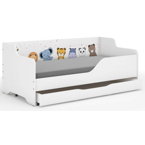 1 kép LILU gyerekágy laminált oldallal 160x80cm matraccal és ágyneműtartóval - mini zoo