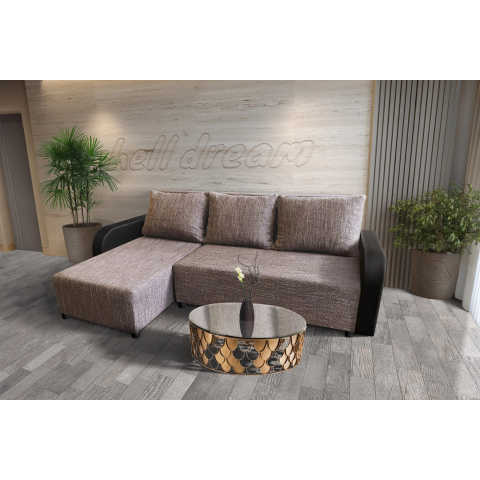 1 kép Linda sarokkanapé remek világos barna zsákszövettel 200x135cm-es fekvőfelülettel