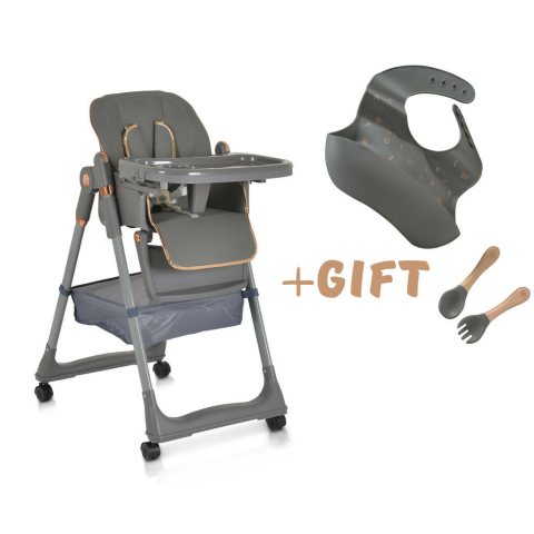 1 kép LINDO multifunkciós etetőszék kiegészítőkkel (előke, kanál, villa) SZÜRKE