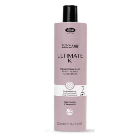 Lisap Top Care Ultimate K hajegyenesítő fluid Step 2, 500 ml - A Lisap laboratórium legújabb kutatásainak eredménye a Lisap Ultimate K termékcsalád, az innovatív, sokoldalú, vegán, rendkívül hatékony és hosszan tartó professzionális hajvasaló kezelés, v