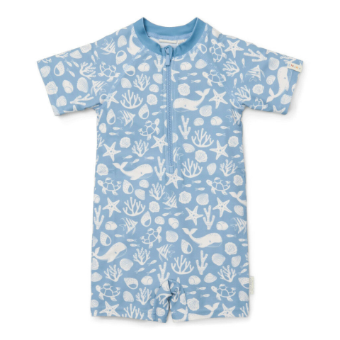 Fedezd fel a víz alatti világot stílusosan! Ez a cuki, óceánkék úszóoverál tele van tengeri élőlényekkel, miközben maximális védelmet nyújt a napsugarak ellen. A Little Dutch egy holland márka, amely kiváló minőségű, stílusos és funkcionális babatermékek