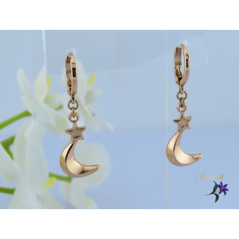 Antiallergén félhold alakú fülbevaló kis csillaggal Szin: 18K Méret: 30x10mm Zár: karika belső méret 10 mm