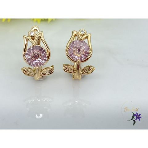 1 kép Lizandra antiallergén virág alakú köves fülbevaló 18K - rózsaszín