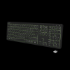 Vezeték nélküli billentyűzet A billentyűzet állítható RGB szivárványos háttérvilágítása (7 szín, köztük: zöld, kék, sárga, lila, ciánkék, fehér és piros, 3 fényerőszint és légzőfény mód) Billentyűzet 111 billentyűvel (egyes gyorsbillentyűk csak Windowshoz