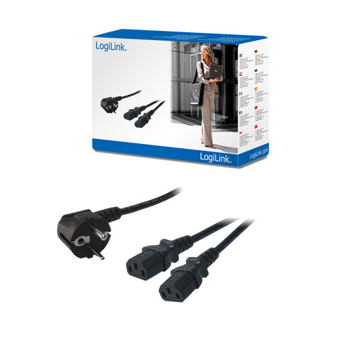 LogiLink Y-tápkábel-C13 apa - IEC13 anya Y- tápkábel, C13 - IEC C13 anya 1x Schuko apa (forgatott) 2x IEC C13 anya (egyenes) tápkábel Szín: fekete Hossz: 1.50 méter Y tápkábel, PC vagy monitor 230 volthoz való csatlakoztatásához. A kábel kettő