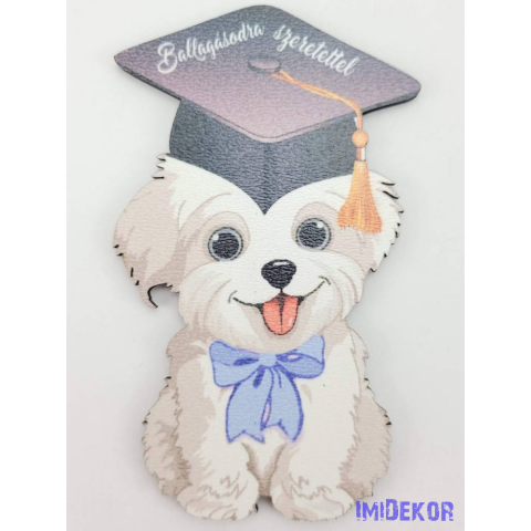 Lógónyelvű kutyus tábla kék masnis ballagó kalapban - Feliratos dekorációs kellék 1 kép