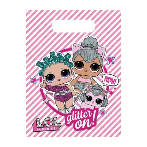LOL Surprise ajándéktasak, ajándékzacskó 6 db-os6 db ajándéktasak/csomagAnyaga: műanyag