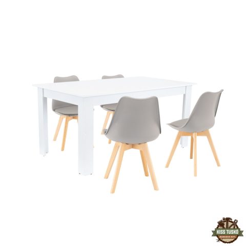 Lola 4+1 étkező garnitúra szürke-fehér Lola 4+1 étkező garnitúra szürke-fehérElegáns étkezőgarnitúra modern otthonokbaA Leziter márka Lola 4+1 étkezőgarnitúrája tökéletes választás modern lakásokba, éttermekbe és stílusos irodai konyhákba egyaránt. A g