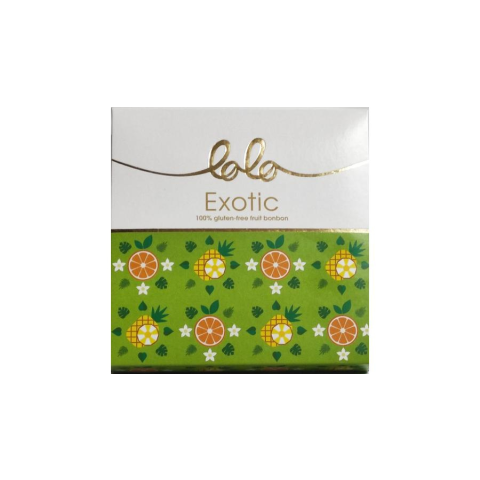 1 kép Lolo Exotic Gluténmentes Fehércsokoládés Gyümölcsbonbon Hozzáadott Cukor Nélkül 100g