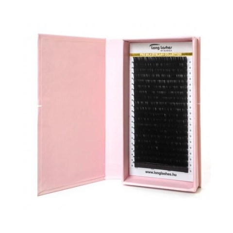 20 soros mélyfekete Pro Silk Collection selyem szempillák, a legkiválóbb minőségű ultra puha koreai PBT anyagból, félfényes bevonattal