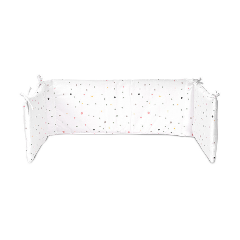 Magas minőségű pamut rácsvédő kiságyra. A rácsvédőt a megkötőkkel gyorsan és egyszerűen lehet rögzíteni minden rácsos kiságyhoz. Huzat anyaga: 100% pamut Töltet anyaga: 100% poliészter Könnyen tisztítható,30°-on mosható. Mérete: 140x27 cm ( egy részbő