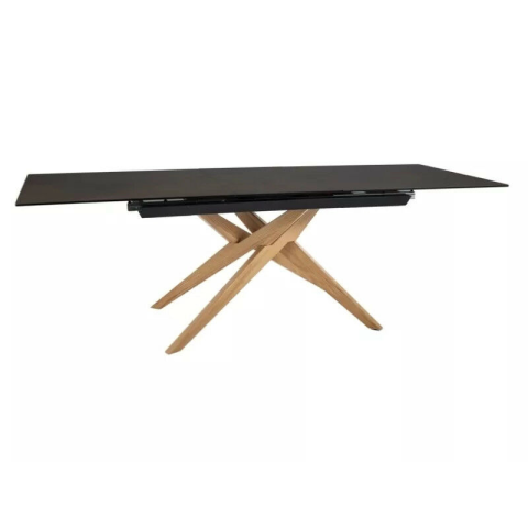 Loreto Ceramic Kihúzható Étkezőasztal Matt Bronz Üvegkerámia Tölgyfa Lábakkal bútor termékleírás