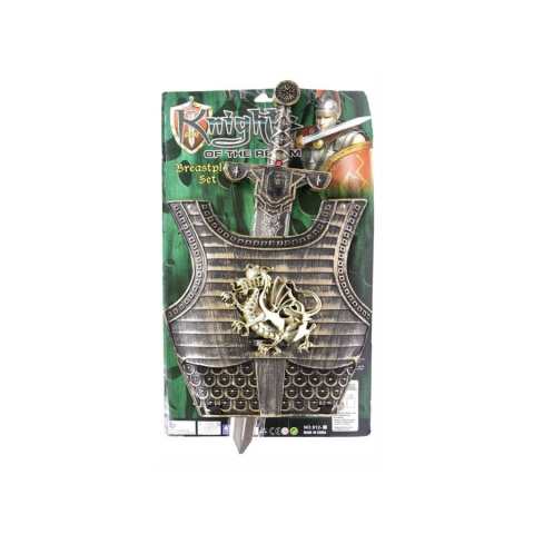 Öltözz be harcosnak, légy Te a sárkány lovagja! A Lovagi páncél és kard készlet ártalmatlan, műanyagból készült lovagkardból és egy mellvértből áll. A kard gombnyomásra hangot ad ki magából, a készlettel ókori, vagy középkori harcosnak is be tudsz öltözni. A Lovagi páncél és kard készlet a jelmezek tökéletes kiegészítője! A játék 3 darab LR44 gombelemmel működik, a csomagolás az elemeket nem tartalmazza. A Lovagi páncél és kard készlet univerzális m