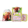 1 kép Lovas csatos ergonómikus iskolatáska tolltartóval és tornazsákkal, Premium, zöld-rózsaszín