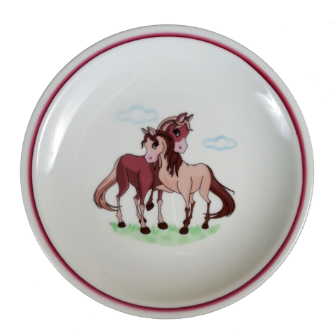 Lovas kistányérLó mintás porcelán tányér. mely felirattal névre szólóvá is tehető.A porcelánt festés után 820 fokon égetem ki, mikrohullámú sütőbe betehetők, mosogatógépben tisztíthatók.