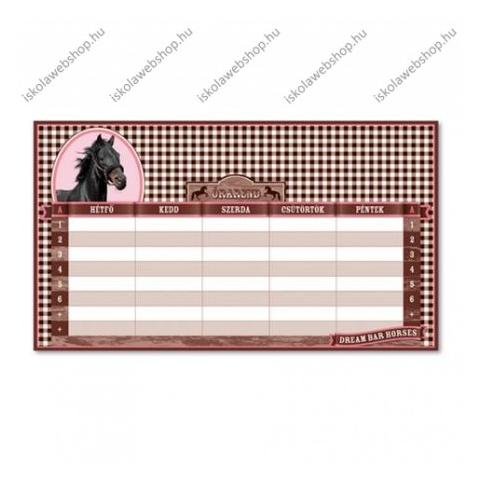 Termékjellemzők: - LOVAS KOLLEKCIÓ! - Kétoldalas, magyar nyelvű órarend A és B hét beosztással. - 250 gr-os félfényes műnyomó papírra, 4 szín nyomással nyomott. - Méret:190x108 mm