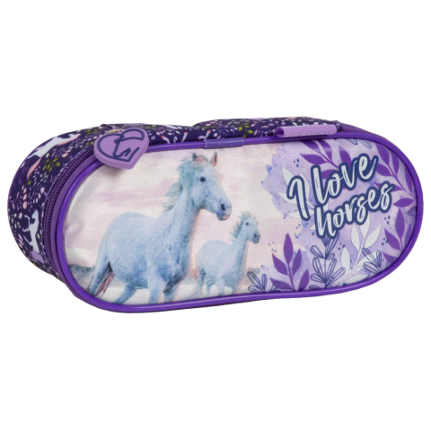 Ez a lila színű, lovas mintás tolltartó tökéletes választás minden kis és nagy lórajongónak. Egyrekeszes kialakítása egyszerű, mégis rendkívül praktikus – a beledobálós rendszer lehetővé teszi, hogy az írószerek gyorsan és kényelmesen elhelyezhetők legyen