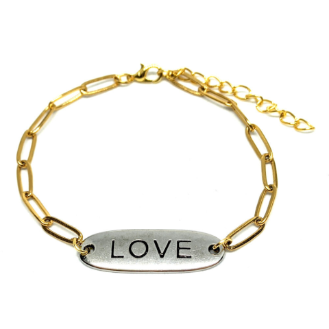 Love felirat bilétás rozsdamentes acél hosszú szemes karkötő, arany színű